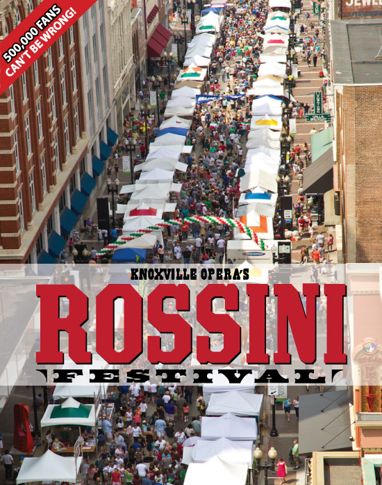 The Knoxville Opera’s Rossini Festival is this Saturday, April 27, from 11:00 a.m. to 9:00 p.m.